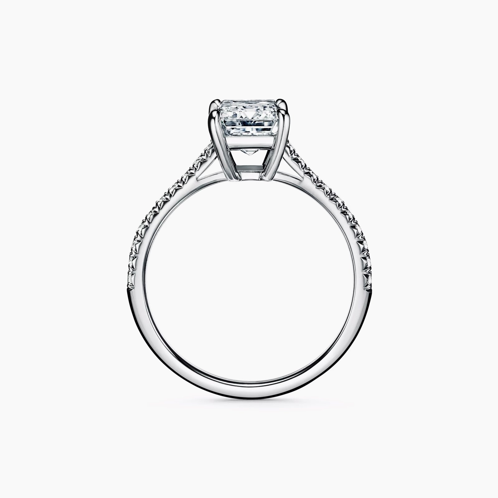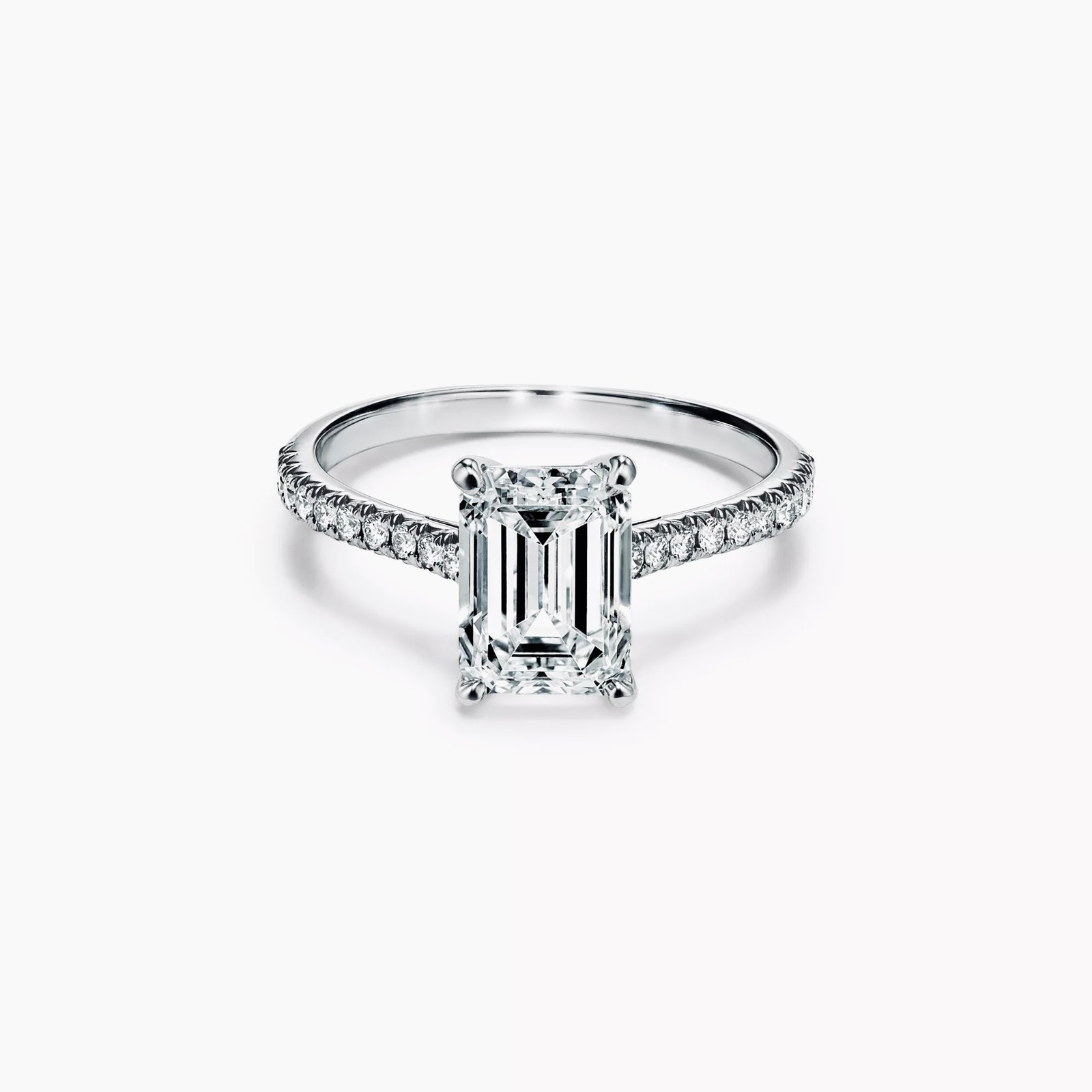 The Medici Allegra Engagement Ring is a luminous expression of elegance and haute joaillerie savoir-faire. At its center shines a 1.5 or 2.0 ct IGI-certified emerald-cut lab-grown diamond, graded D color and VVS clarity, meticulously faceted to reveal the emerald cut’s iconic geometry, captivating depth, and mirror-like brilliance.