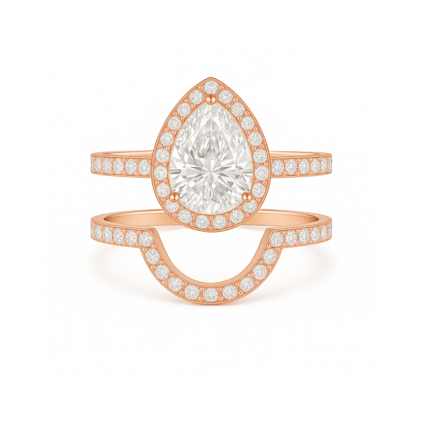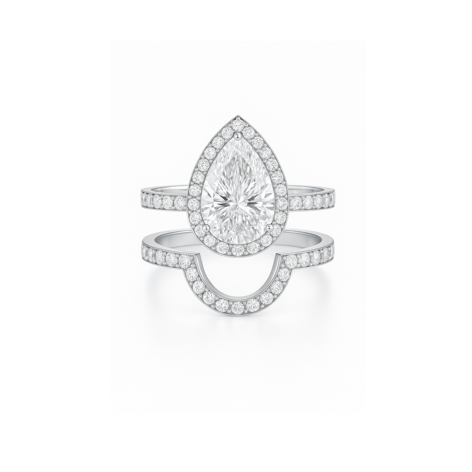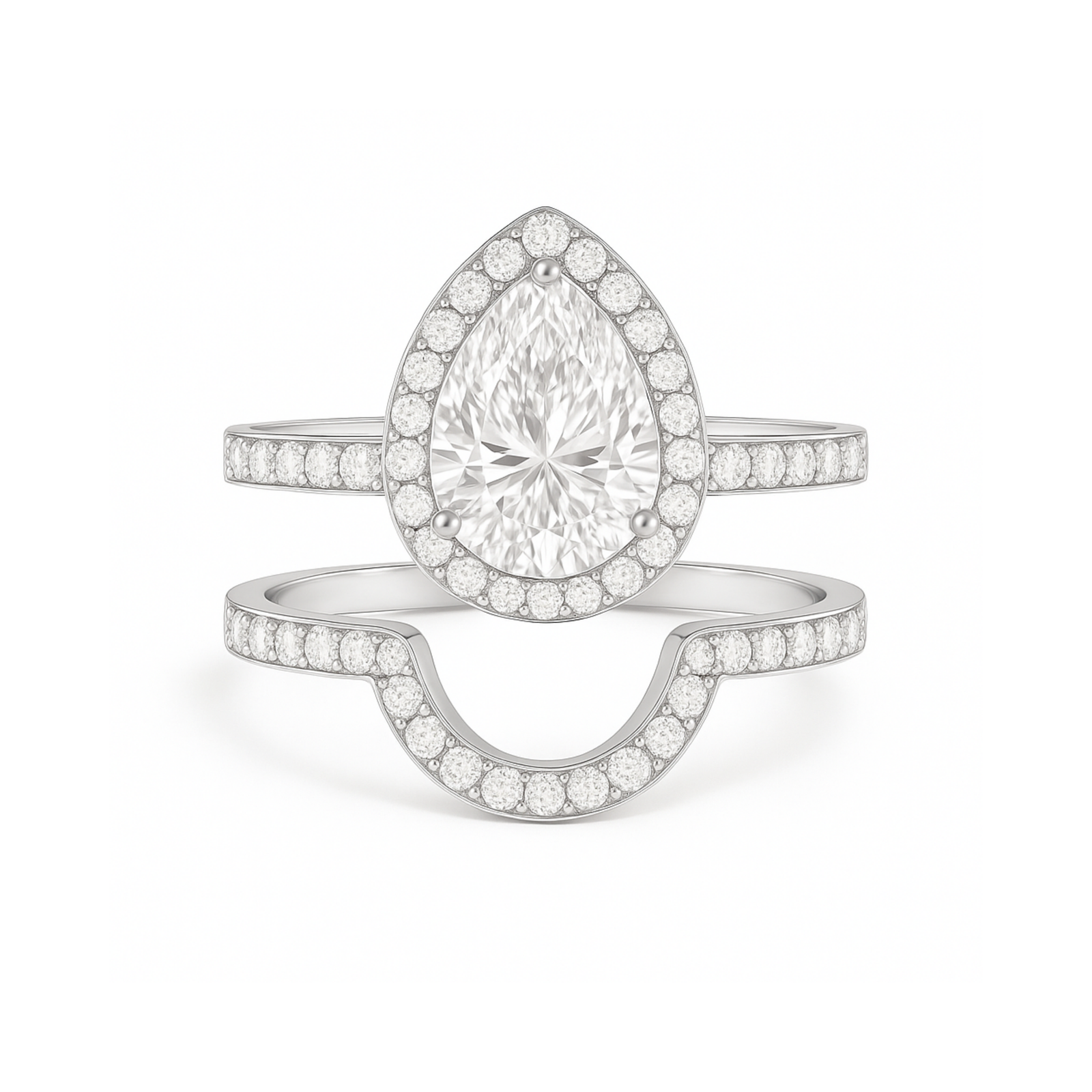 Medici Giulia Twin Set Pear Halo Engagement Ring with Matching Pavé Band