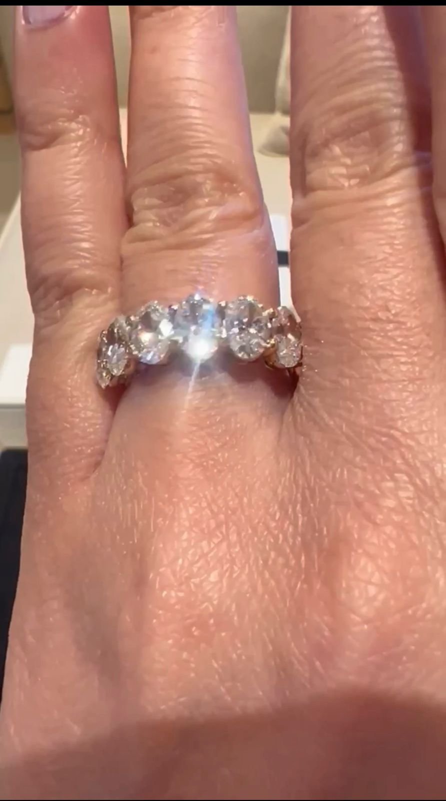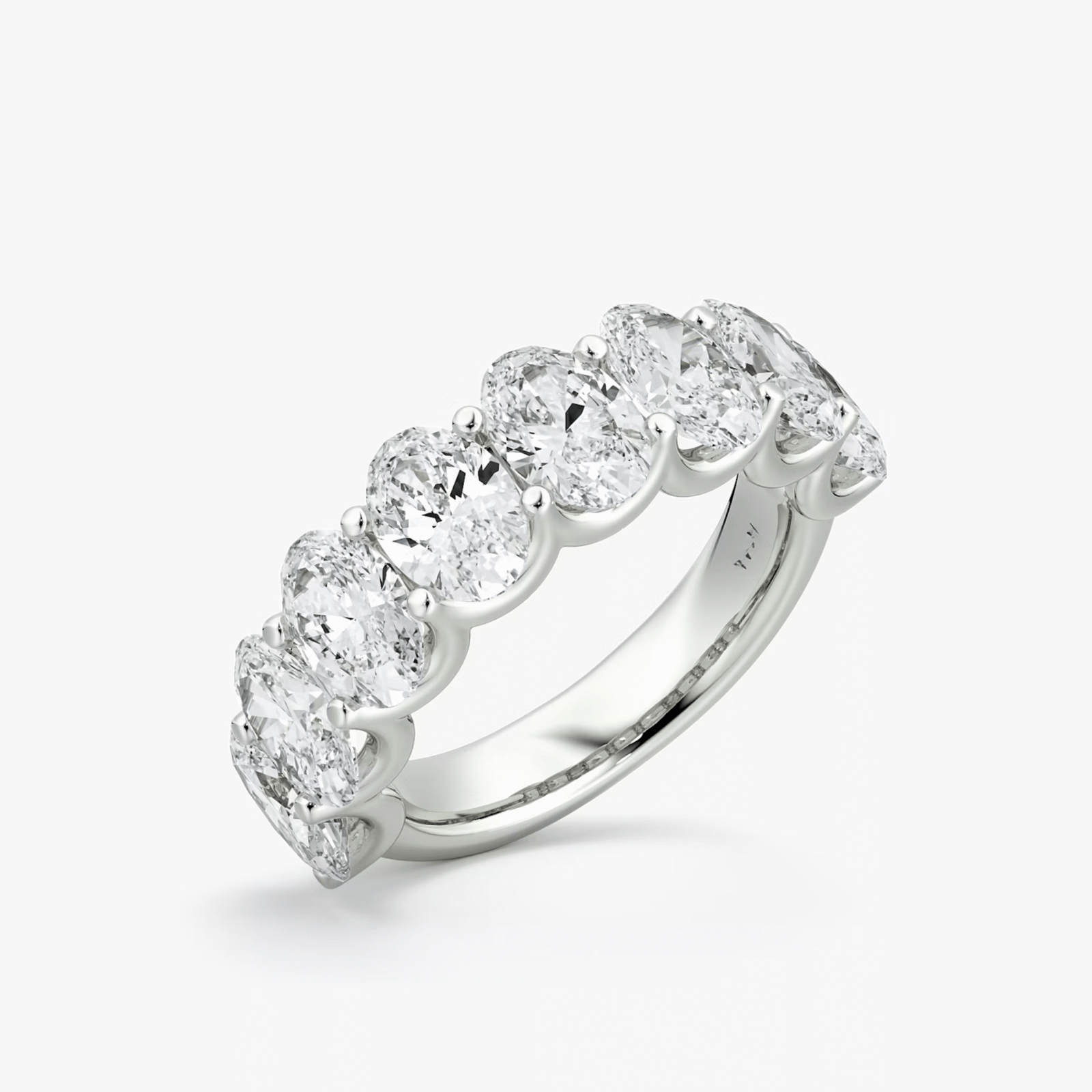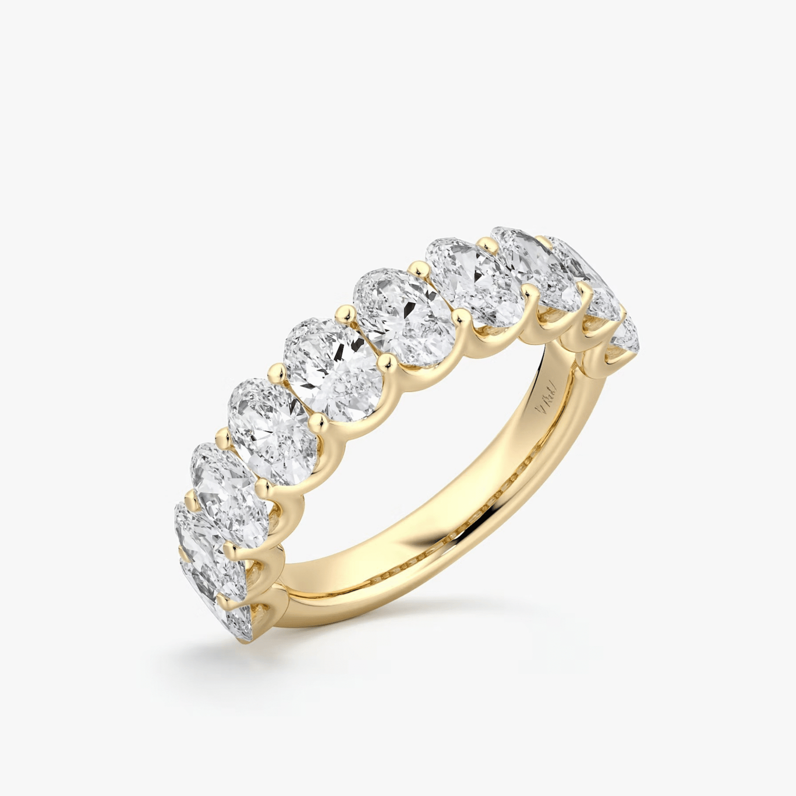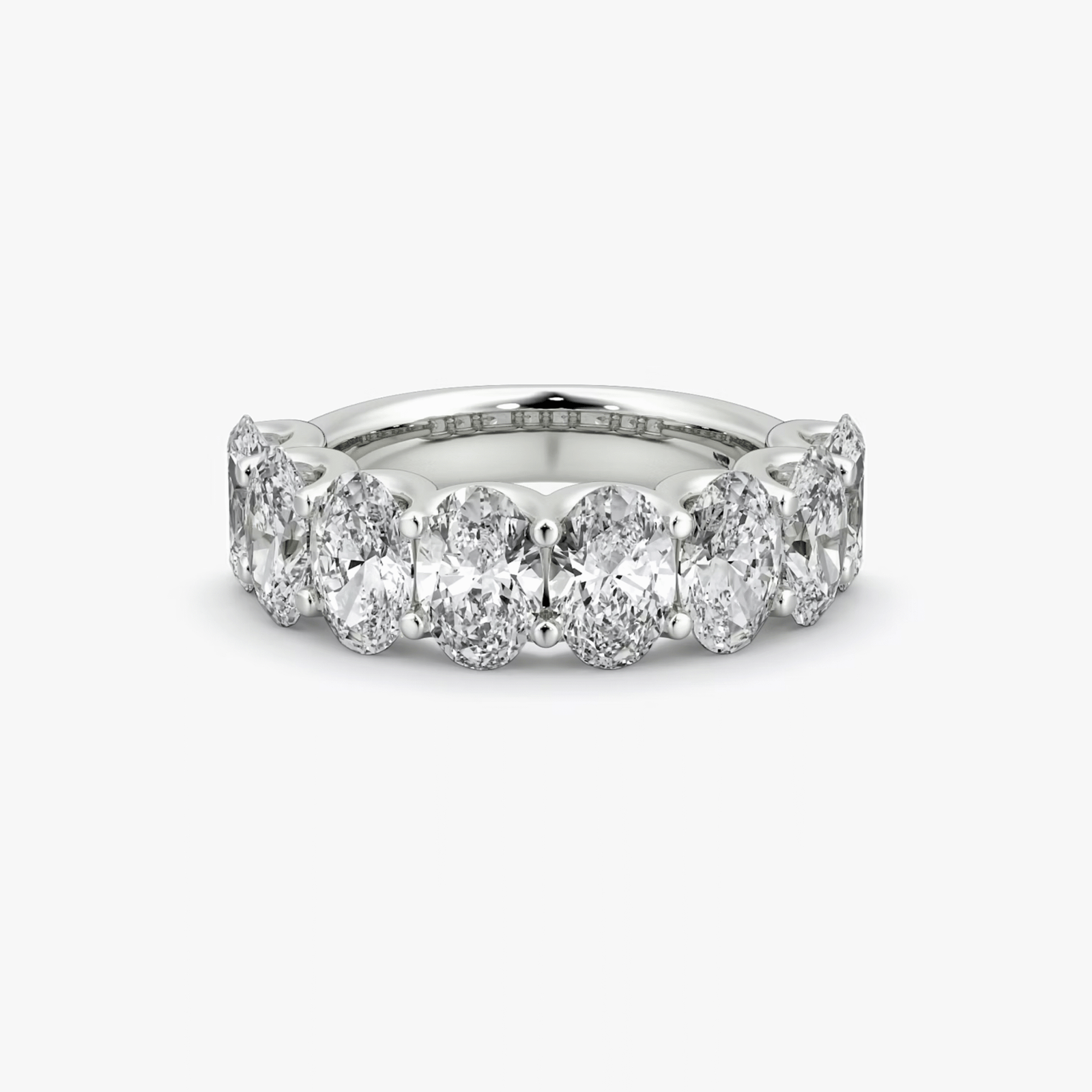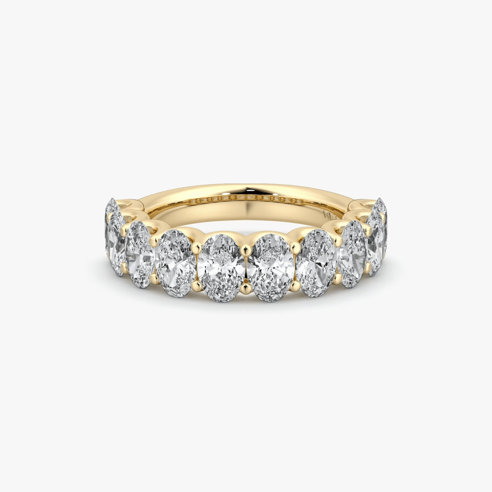 A refined 3.5-carat design featuring oval-cut diamonds of 0.30 carats each. A timeless half eternity band crafted in 18 kt gold.