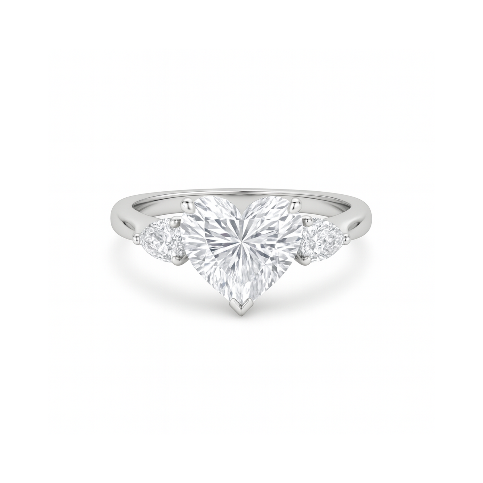The Medici Valentina Ring is a luminous expression of romance and haute joaillerie savoir-faire. At its center shines a 1.5, 2.0 or 3.0 ct IGI-certified heart-shaped lab-grown diamond, graded E color and VVS1 clarity, meticulously cut to radiate captivating fire, brilliance, and purity.